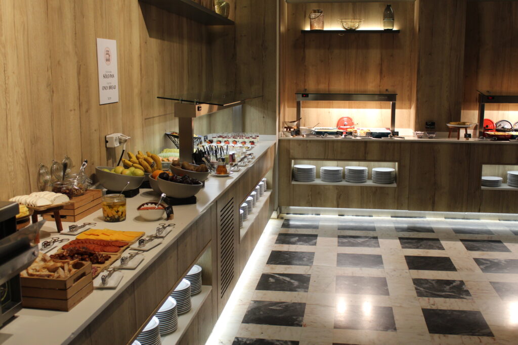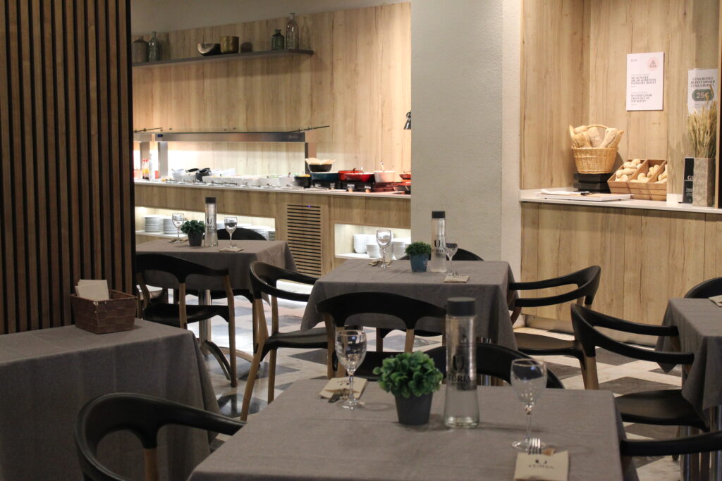 El Hotel Turia ha convertido la cena en el momento más esperado del día: una estación de paellas dentro del buffet donde el arroz se cocina al momento y el comensal se sirve directamente. Una apuesta valiente —y consciente de la tradición— que garantiza que todos los huéspedes prueben la paella auténtica aunque sea por la noche.